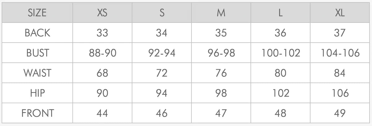 WAIMARI PRODUCT MEASUREMENTS IN CENTIMETERS